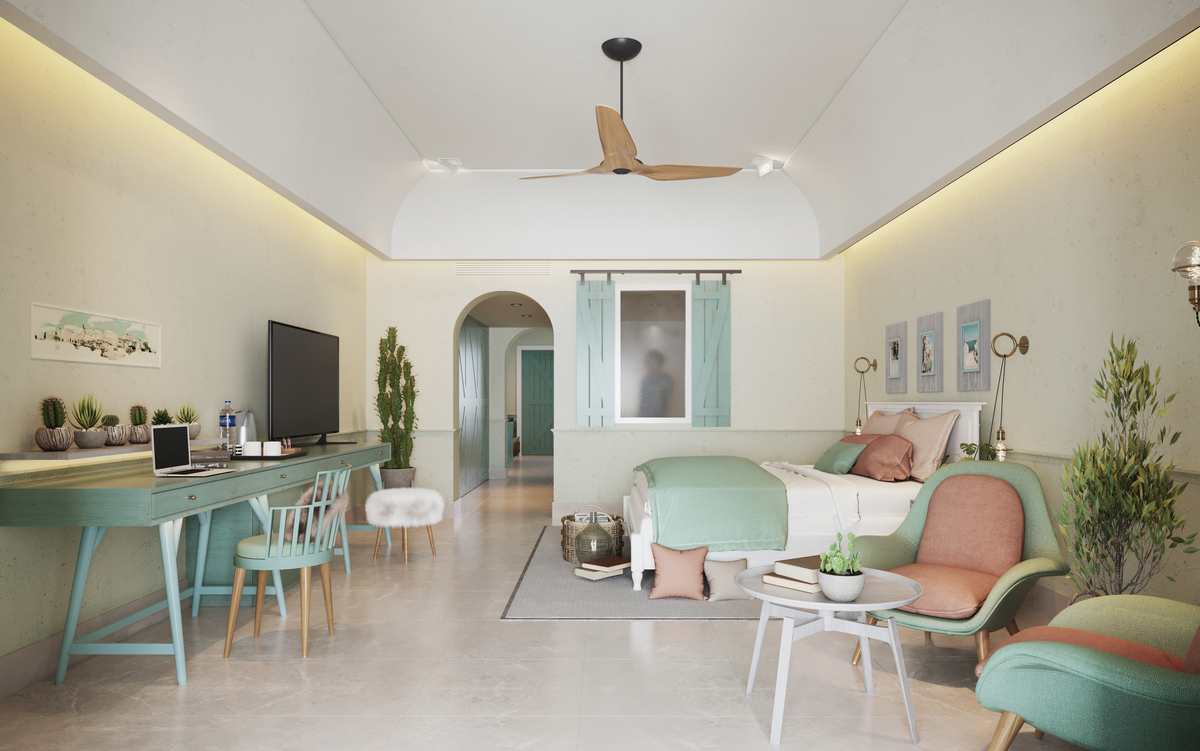 The Greek Style Family Rooms at Albaker Marina Hotel and Resort in Marsa Alam offer a charming and immersive experience inspired by the iconic architecture and culture of Greece. These spacious rooms feature pastel hues, Mediterranean inspired furnishings, and modern amenities. With panoramic views of the resort's gardens or the Red Sea, families can relax and unwind in style while creating