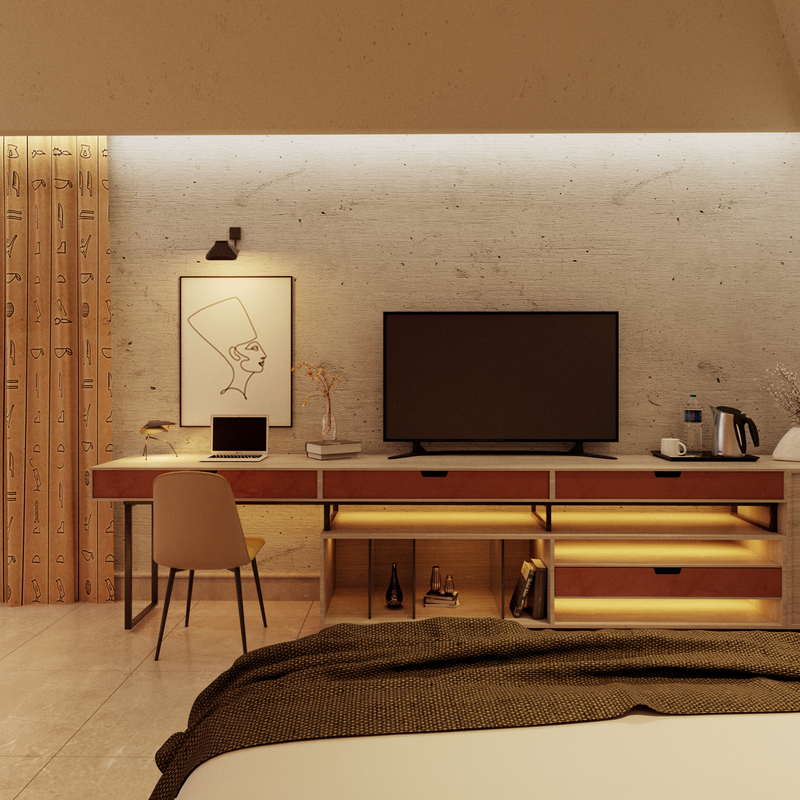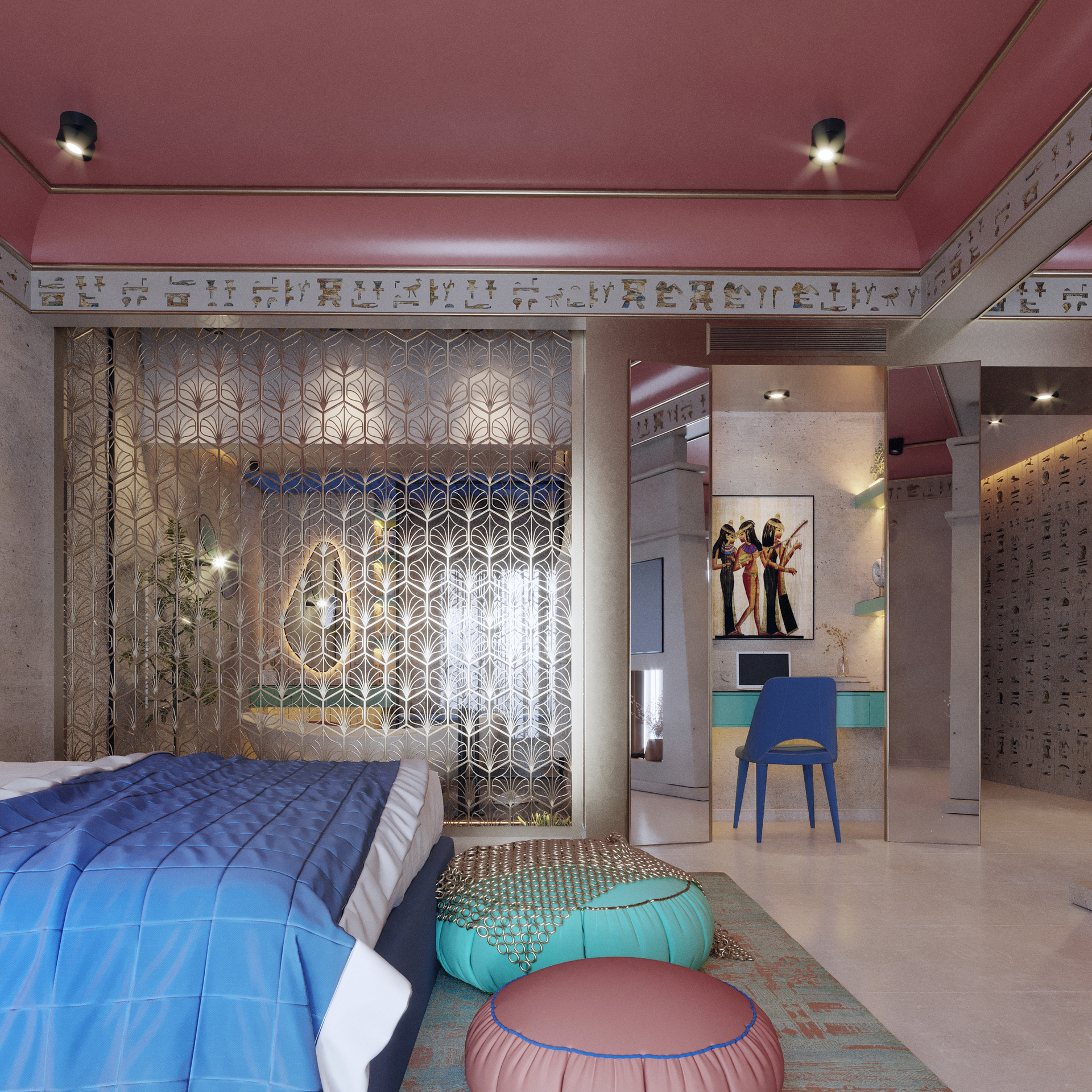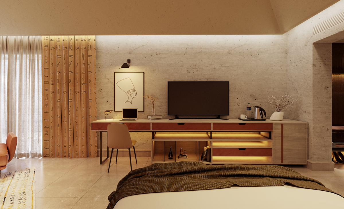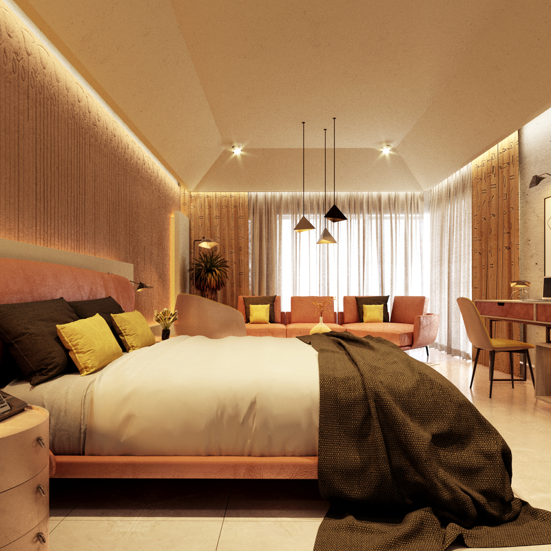 Guests stepping into the Pharaoh Inspired Style Rooms are transported back in time to the splendor of ancient Egypt, where every detail reflects the sophistication and power of this ancient civilization. From luxurious furnishings to ornate decorations, each element pays homage to Egypt's rich cultural heritage.